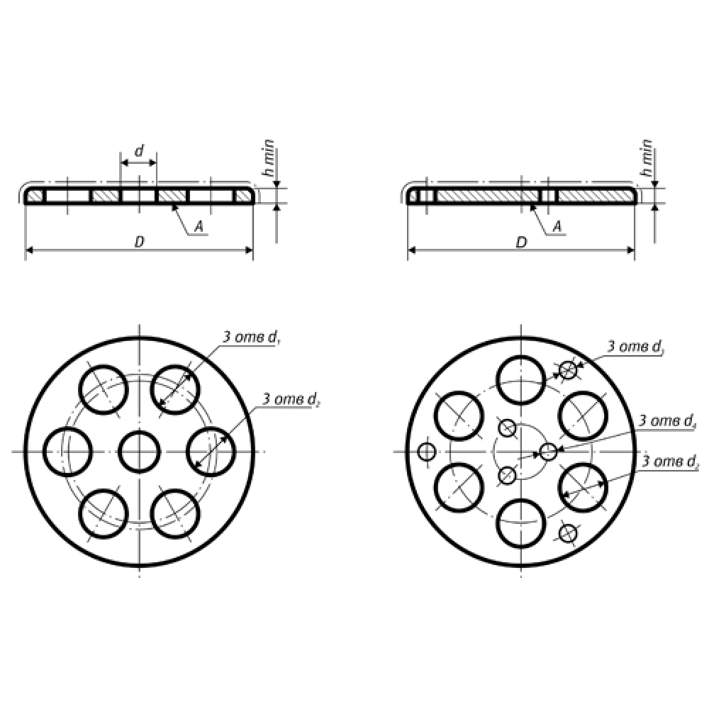 | D, мм | 88−3 | 128−3 | 175−6 | 230−6 |
