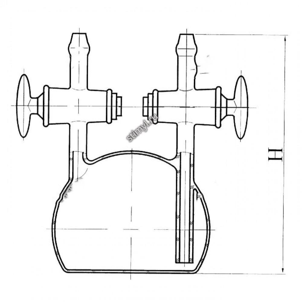 Пикнометр для газов ПГ применяется при определении плотности газов.Пикнометры изготавливаются из стекла марки ХС-3 или НС-3, кран - конусный стеклянный одноходовой с индивидуальной пришлифовкой исп.1.
