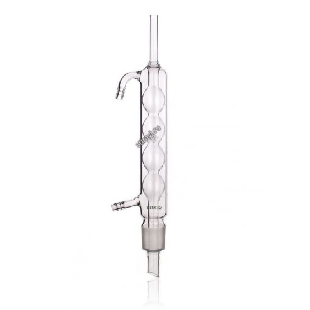 Прибор для конденсации пара при помощи охлаждающей среды, чаще всего воды. Холодильники устанавливают либо наклонно, когда нужно собрать конденсат в приемнике, либо вертикально для возврата конденсата в колбу с кипящей жидкостью. В этом случае холодильник называют обратным.Является типичным обратным холодильником. Благодаря большей поверхности охлаждения холодильники Аллина короче холодильников Вейгеля-Либиха. Через шариковый холодильник удобно вставлять ось мешалки, вводить в реактор различные вещества, хорошо смываемые в колбу конденсатом и подогреваемые им.Обычно число шариков у таких холодильников колеблется от 3 до 8. По эффективности в качестве обратного холодильника холодильник Аллина уступает холодильнику Димрота, выдерживающему значительные перепады температур.Во избежание захлебывания, когда конденсат не успевает стекать обратно в колбу с кипящей жидкостью, обратный шариковый холодильник устанавливают в наклонном положении, но наклон не должен быть слишком большим, чтобы конденсат не скапливался в шарах. Скопление конденсата приводит к уменьшению эффективной охлаждающей поверхности холодильника.
