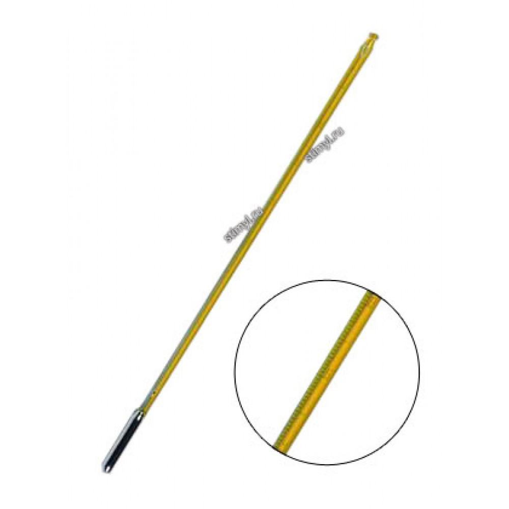 Термометр ТИН-12 для определения температуры при определении давления насыщенных паров. Изготавливается по ГОСТ 400-80. Термометр ТИН-12 — термометр стеклянный ртутный «палочного» типа, изготовленный из массивной капиллярной трубки. Шкала нанесена непосредственно на трубку. Термометр полного погружения.При измерении температуры погружается в измеряемую среду до отсчитываемой температурной отметки на шкале. Для предотвращения разрушения при перегреве термометр имеет запасной резервуар не менее чем на 20°С.Термометр предназначен для измерения температуры при определении давления насыщенных паров нефтепродуктов. Внесен в Государственный реестр средств измерений и имеет «Сертификат об утверждении типа средств измерений».КонструкцияСтеклянный термометр палочного типа из массивной капиллярной трубки.При определении температуры термометр погружают в измеряемую среду полностью.